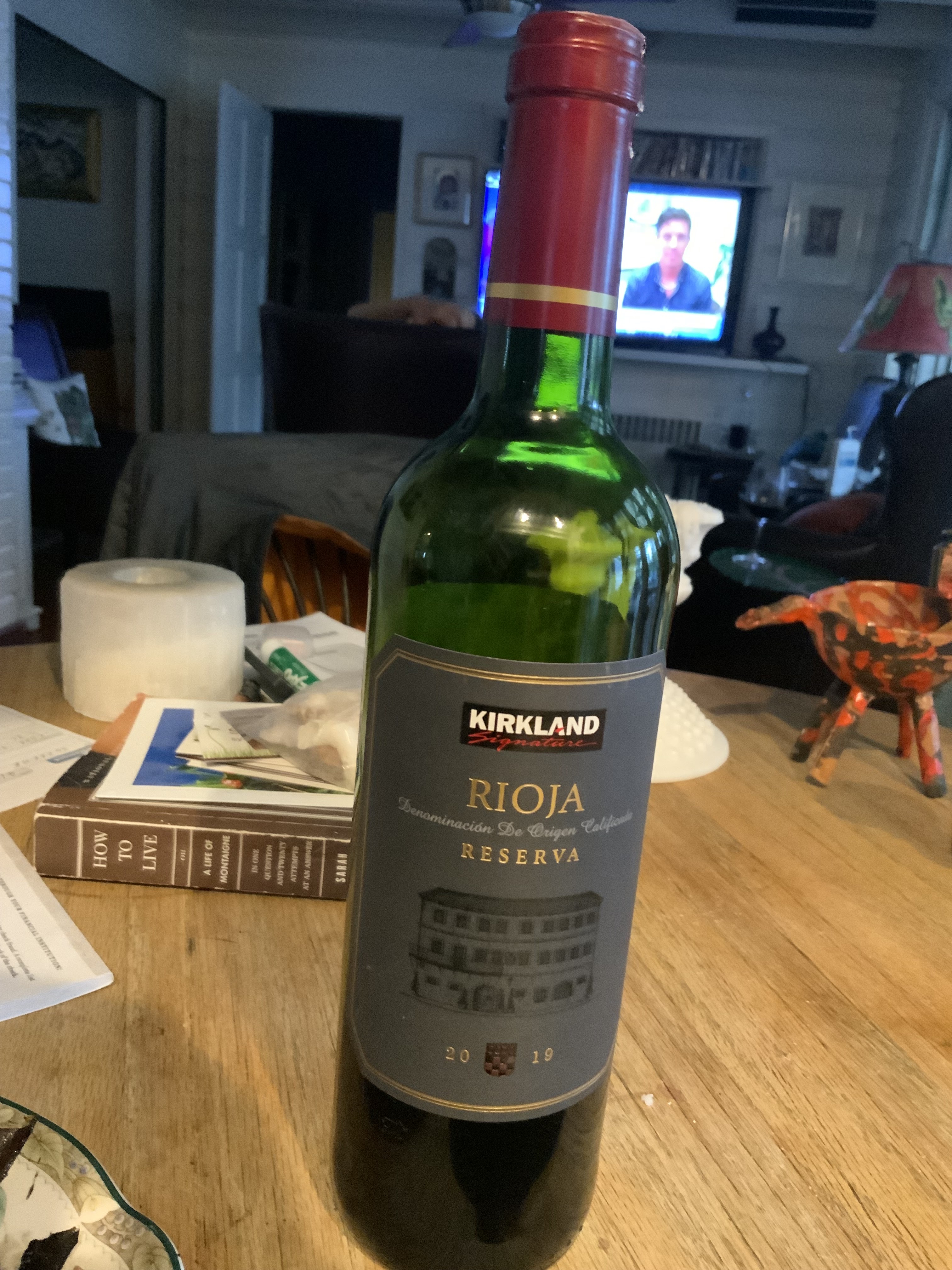 Suzette opened a bottle of Kirkland Rioja Reserva.
